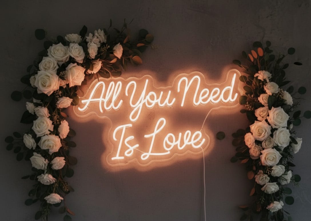 Fill your space with warmth and romantic charm with our “All You Need Is Love” LED Neon Sign. Inspired by timeless love classics, this sign is perfect for wedding décor, couple shoots, proposals, anniversaries, and stylish home interiors. Its elegant glow instantly enhances your backdrop and creates picture-perfect moments.
