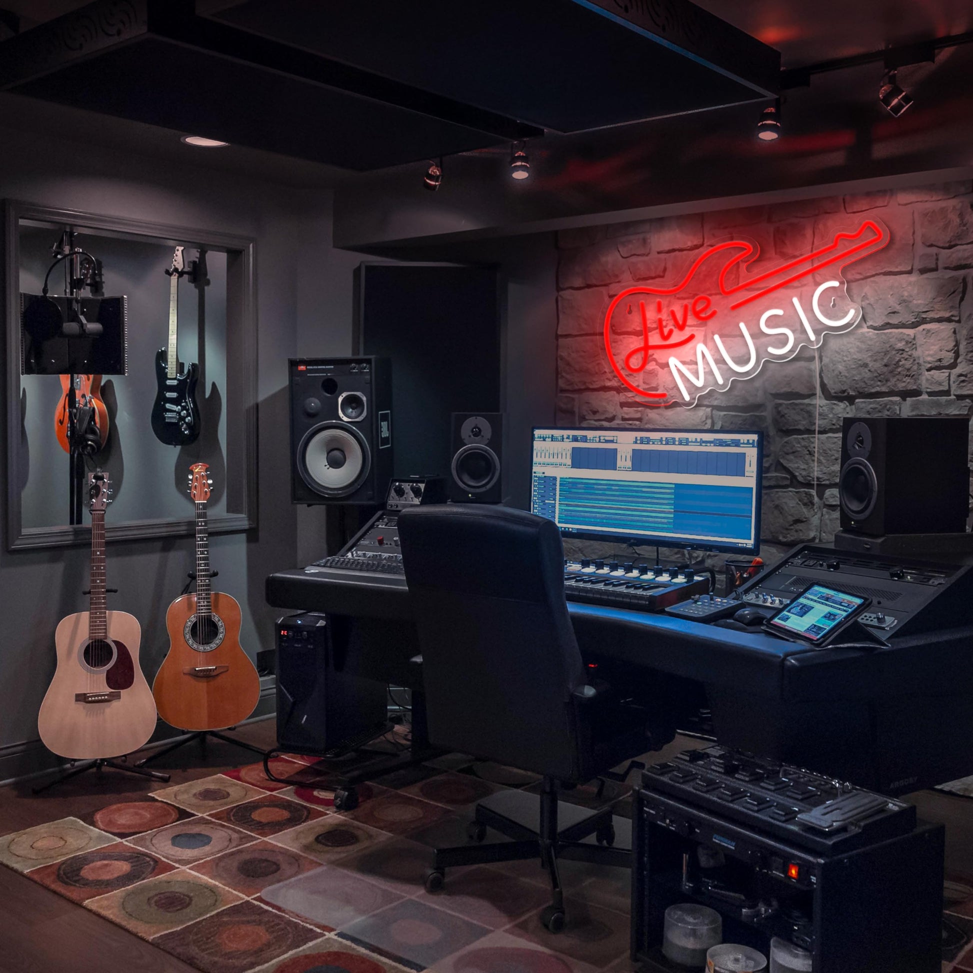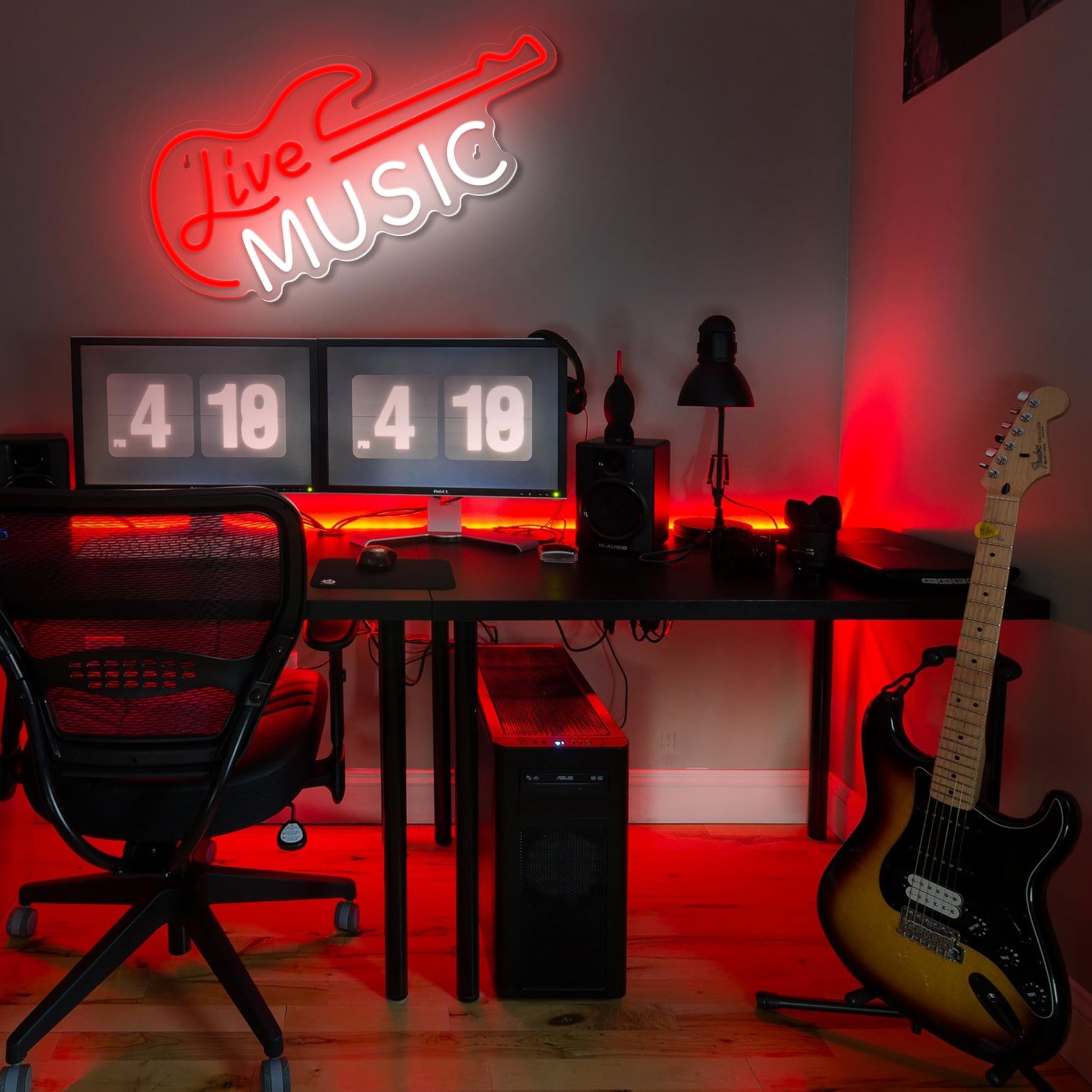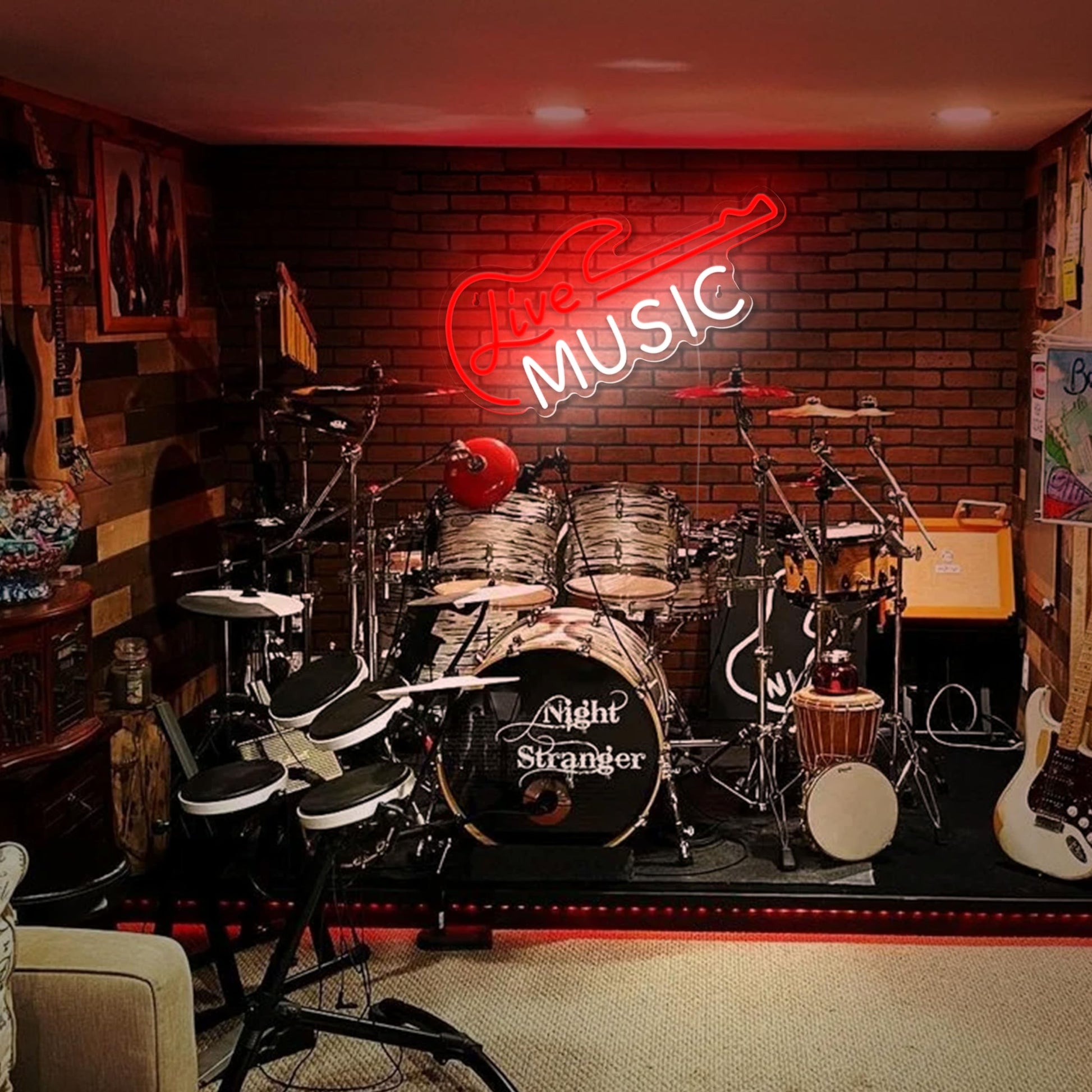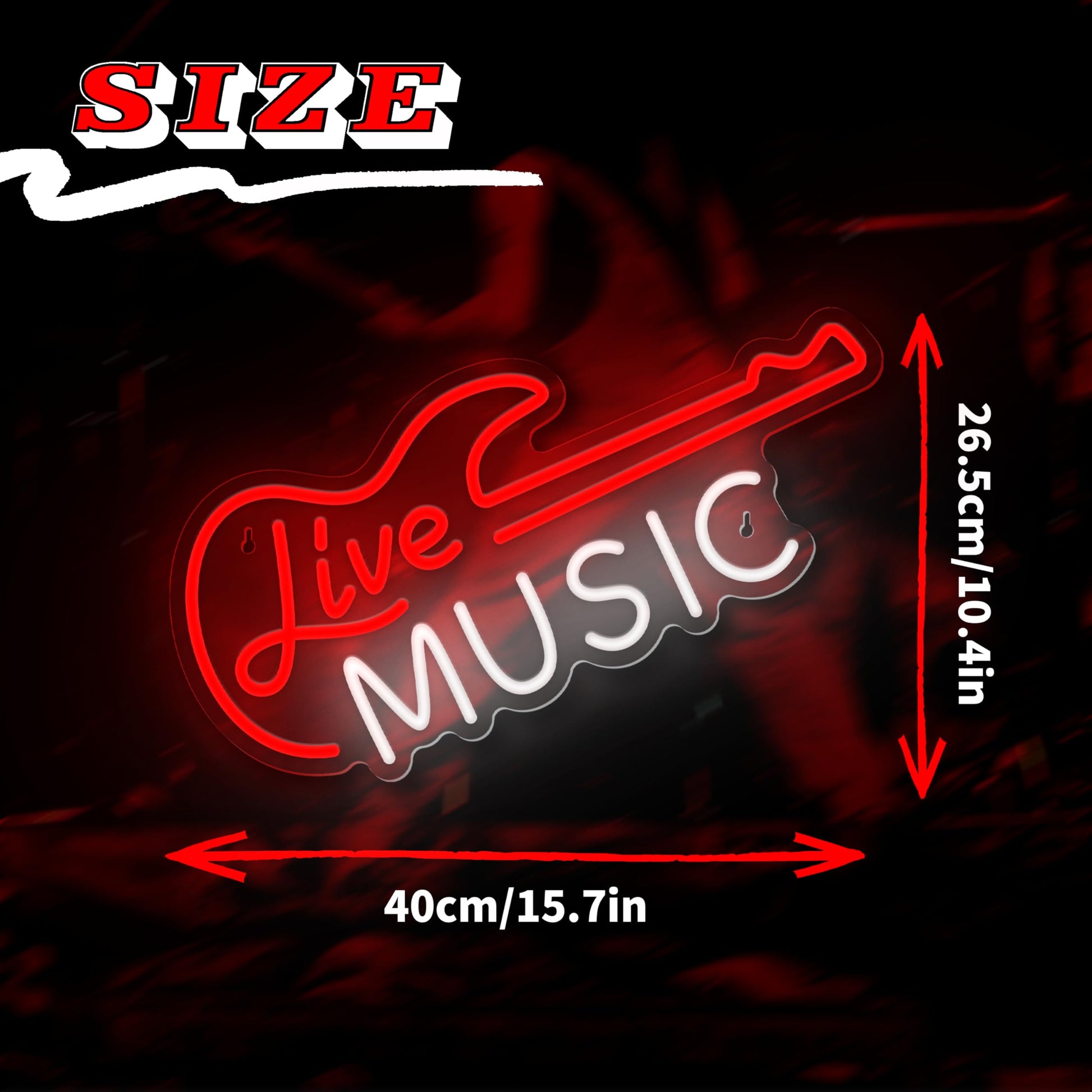 - šøćGuitar Neon Signć: Live Music Guitar Neon Signs can create an artistic atmosphere and can be used to decorate music rooms, bedrooms, and children's rooms. It can make your boring room full of vitality and youthful atmosphere.
